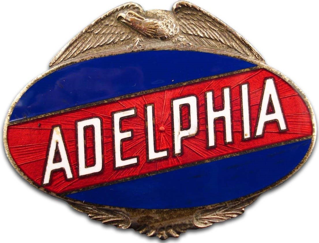 К сожалению, нет пояснения значения эмблемы автомобильной марки Adelphia. Фантазия автора может лишь предположить, что владельцы компании имели ввиду синий овал эмблемы Ford, который перечеркнут красной лентой с названием компании Adelphia. Окаймляет овал эмблемы хищный орел (размеры 63 х 48 мм)